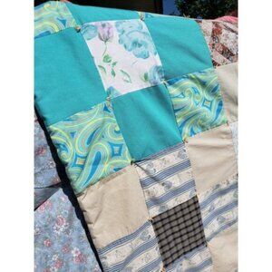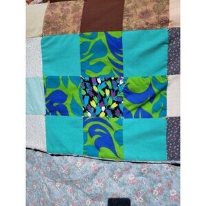 (💥3/$50) Vtg Nine Patch Quilt Square Lap Blanket Floral Fabric Patchwork