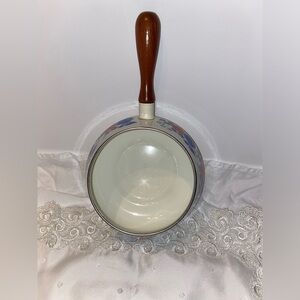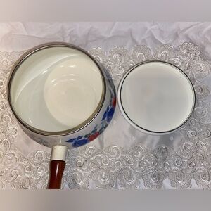 3/55$ Cottage core Vintage 1970s Enamelware Pot with wood handles