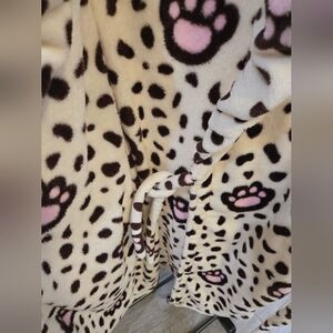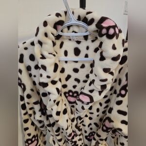 This cozy robe features a playful paw print design in cream and pink. Perfect for bedtime comfort or lazy days!