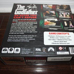 100% official licensed THE GODFATHER: An Offer You Can't Refuse card game. Manufactured by IDW Games. Can be played with just 3 players. Recommended for 5+ players. For ages +13.