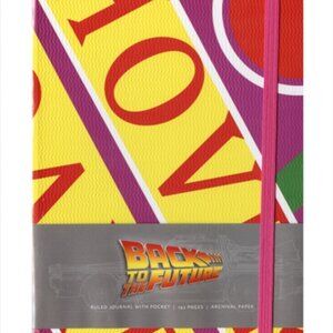 Celebrate the beloved Back to the Future film trilogy with this hardcover ruled journal. Regarded as one of the greatest film series of all time, the three Back to the Future movies have left an indelible mark on pop culture, inspiring and entertaining generations of movie lovers around the world. Featuring iconic imagery from the films, this stunning hardcover journal captures the iconic look and feel of the trilogy and will be a must-have item for fans. With sturdy construction and sewn binding, this journal lies flat, and the 192 lined, acid-free pages of high-quality heavy stock paper take both pen and pencil nicely to invite a flow of inspiration. All this, plus a ribbon placeholder, elastic closure, and 4.5 x 7.5-inch back pocket, perfect for holding photographs and mementos.
