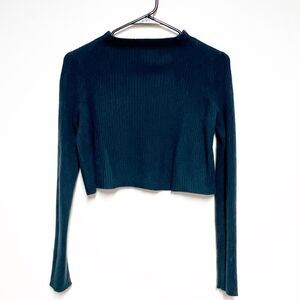 360 Cashmere Teal Cropped Ribbed Cashmere Sweater Sz XS