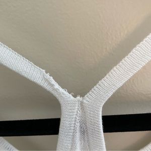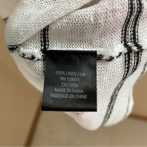 360 SWEATER Italian Yarn Striped Racer Back 100% Linen MIDI Dress, white and bk, light weight L, on the thin side.. can be used as bikini cover also, damage on one strap shown in pics