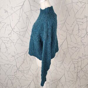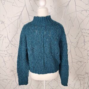 360 Sweater Emerald Blue Alpaca Wool Cable Knit Mockneck Sweater
