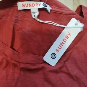 Sundry Pima Cotton t-shirt bnwt size 3( large), red orange color, on a back stars is black.