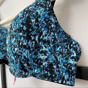 [36B]🦋LA Senza Aqua Blue & Black Dot Splatter Print | Lightweight T-Shirt Bra