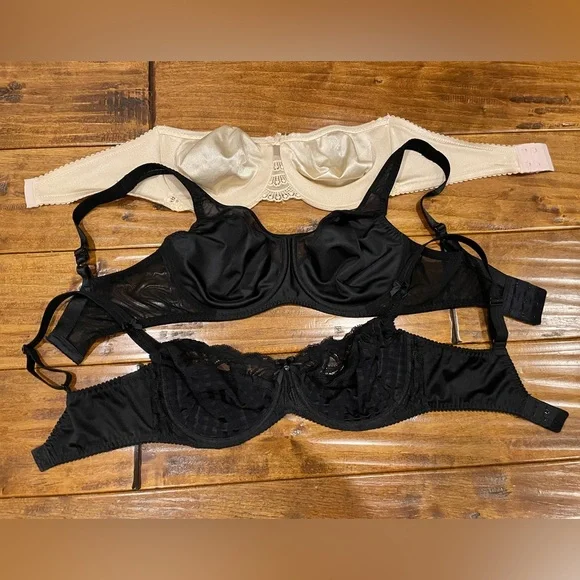 Sexy 36D bra bundle. Black Prima Donna bra, black Warner’s bra, beige strapless Daisyfresh bra.
