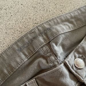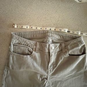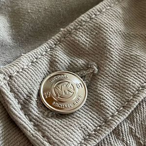 Grey regular rise slim with a slight taper ankle jeans by Michael Kors. They have 5 pockets and a zipper fly with top button. The top button and pocket rivets have the signature Michael Kors on them.