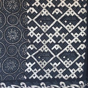 The navy/silver sarong/wrap is new. Versatile, bold and beautiful ia skirt, bathingsuit cover or dress this blue-tiful piece will shine bright however you wear it.