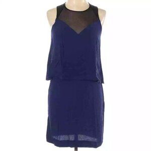 $375 Sandro Paris SILK Remy Marine Blue black Mini sleeveless Dress Size 2 / Med