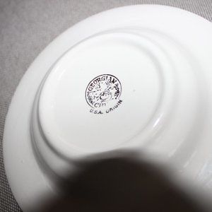 From my own research, this is a vintage handmade ashtray stamped "GEORGIAN CHINA" and "USA ORIG." on the reverse. This beautiful ceramic souvenir measures 6" across.