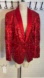 Channel your inner Taylor Swift Showgirl in this awesome red sequin blazer. It is a mens tuxedo style blazer but is a unisex garment in my opinion. It is a mens medium so will fit up to a ladies xl. The lay flat measurements are as follows: