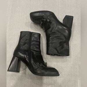 [38/US7]Lavorazion Artigiana Ateliers Black Ankle Block Heel Boots Y2K Buckle