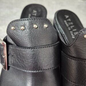 39 Ateliers Black Leather Studded Slip on Sandals Mules