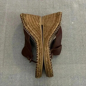 [39/9]Burberry Nova Check Brown Leather Espadrille Wedge Slides Sandals
