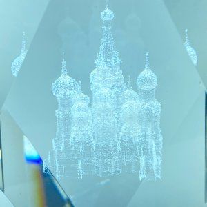 3D Crystal Glass Laser Cut Etched Paperweight Moscow Russia Red Square Cathedral