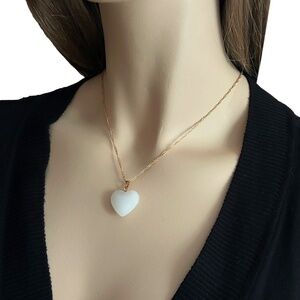 3-D Heart of Glass Purity Pendant Necklace Angelic White Gold Plate Chain