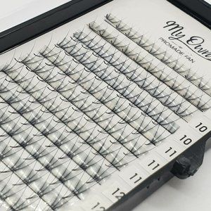Material : Our promade fans material are made from highest quality hair from Korea, 100% Korean Synthetic Mink, black, soft, fluffy, lightweight. Each fan are handmade not by machine, light glue bonding at the base and work very well with adhesive