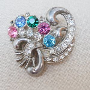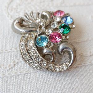 - Beautiful rhinestone brooch : clear, pink, blue and green glass crystals.