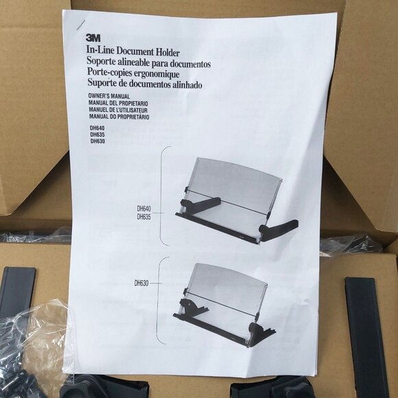 The 3M In Line Document Holder, Model DH630, is a compact, adjustable ergonomic accessory designed to hold documents, books, or catalogs.