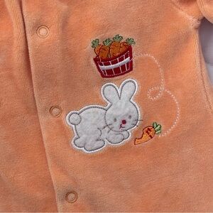 🐣 3M Orange Velour Onesie Footies Bunny Embroidery Easter Long sleeves Carrot