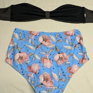 3-PC Bikini Set Size S/M Grey matching bandeau/low rise bottoms & floral bottoms