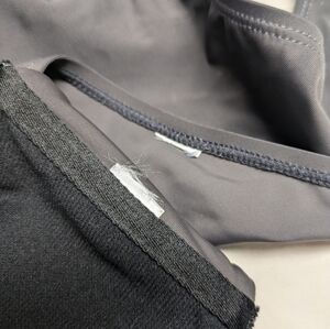 Slate grey bandeau top, no padding or option for padding. No spot to attach straps.