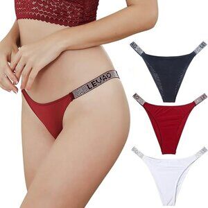 Feel confident and glamorous with this 3-pack of stylish thong panties featuring dazzling rhinestone side straps. Made with soft, stretchy fabric for maximum comfort and a flattering fit.