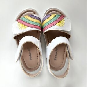 3T Size EU:24/US:8 Toddler Girls Summer White Sandals with Rainbow Embroidery