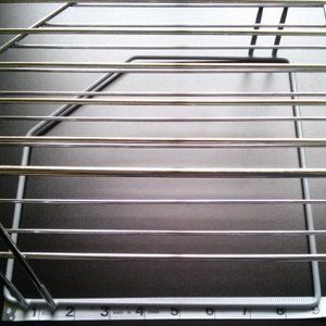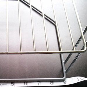Lightly used. In great condition, but it has a tiny rust spot. There's a rubber grip on the bottom level for better placement. See attached pictures.