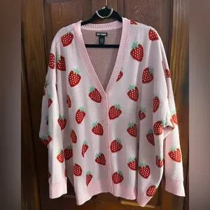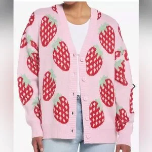 Hot Topic Pink Strawberry Button-Front Girls Cardigan