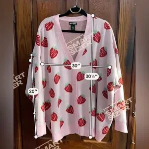 You know when you bite into the ripest homegrown strawberry, and it's just so yummy? This cardigan will make you feel the way that strawberry tastes! Sweet as can be, this button-down pastel pink cardigan features an allover toss pattern of large strawberries.