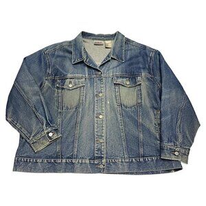 Bill Blass Jeans Vintage 90s Distressed Oversized Denim Jean Jacket