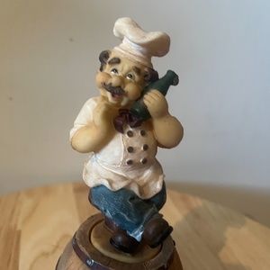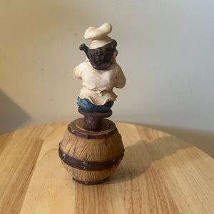 Vintage butler / chef wine bottle stopper with barrel support in excellent used condition. It’s made of a pretty heavy resin, with lots of details, very cute and unique. Please see pictures for dimensions. This is an used vintage item and may show some signs of usage. It comes from a smoke free, pets friendly home. Dimensions are approximative. Recycled bags/box used when possible. Please, let me know if you'd like any additional info and thanks for looking!
