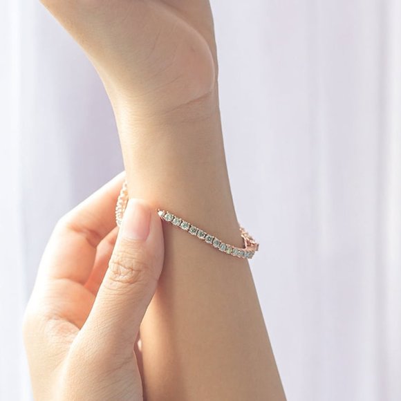 3mm Round Cut Luxurious Moissanite Tennis Bracelet Silver with Rose Gold Plated