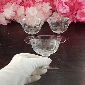 3pc Bohemia Crystal Etched Thistle Coupe Champagne or Sherbet Glasses