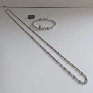 3pc Jewelry Set (Beaded Chain Necklace, "LOVE" Bracelet' Rhinestone Ring)