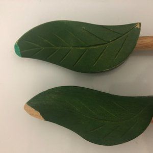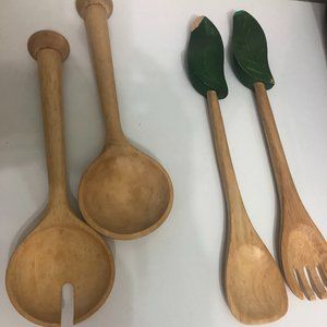 Hi, Welcome to my Closet! Feel free to browse through; you never know what you may find :) Up for your interest is a handcrafted salad bowl set. The bowl is in Like New condition. Kindly view pics of the matching green leaf utensils. The other pair is NOT part of the set. Please contact me if you have questions. Thanks! Smoke & Pet Free home!