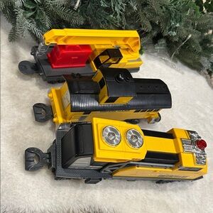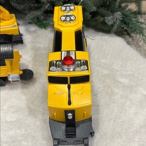 Real engine sound. Runs on “C” batteries. Engine lights up. Super cool for kids. Cars clip together