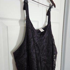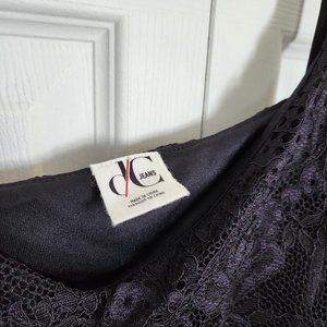 EUC 3x Dcd jeans brand black lace tank top. Very pretty lace overlay front and back. Has solid black tank underneath attached with some stretch. Front lace has flyaway sides on front. Lace falls just below inner top to show delicate lace. This goes great with bolero jacket and dressy jeans or dressy with skirt and heels.