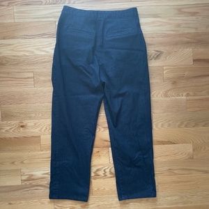 pleated waist, tapered fit - neat crossover fly with buttons on the side
