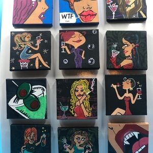 3”x3” Chick Magnets on an Original Hand Painted Stretch Mini Canvases w/Acrylics