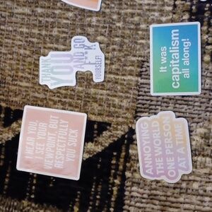Add personality to your space with this vibrant new 30 pc. sticker set, all stickers that are just too "rude" to give out to my customers, don't want to give anyone the wrong impression (LOL), they were suppose to just be "sarcastic" stickers, new in original bag, excellent condition.