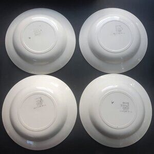 4 Bowls Made in France Salins Avril Hand Painted Folk Art Farmhouse Cottage Blue