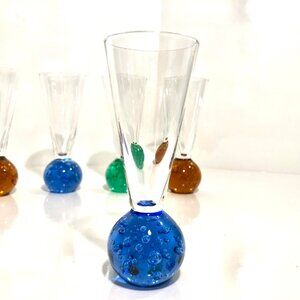4 Bubble Ball Bottom Shot Glasses. (*Green glass no longer available.)