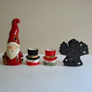 4 Christmas Candle Votive Tealight Holders Santa Snowmen Angel