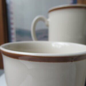 4 Corning Coffee Mug/Cup Cream Colored with Brown Rim USA