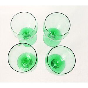 For your consideration are four vintage beautiful green hand blown glass wine glasses with a clear bubble stem.