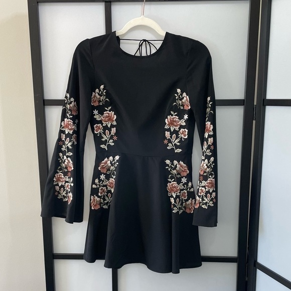 ![[4] H&M Black with Pink & White Floral Long Bell Sleeve Mini Dress - Picture 7 of 11](https://di2ponv0v5otw.cloudfront.net/posts/2025/12/15/693fe3d70841b9f411b725f4/m_693fe3d7dbd8f0bc282c4bd8.jpeg)