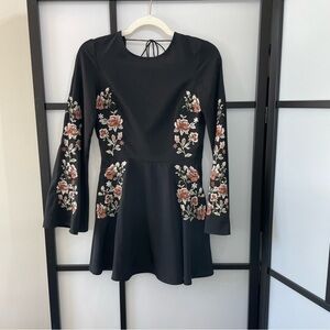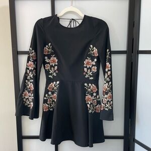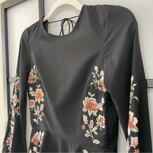 [4] H&M Black with Pink & White Floral Long Bell Sleeve Mini Dress